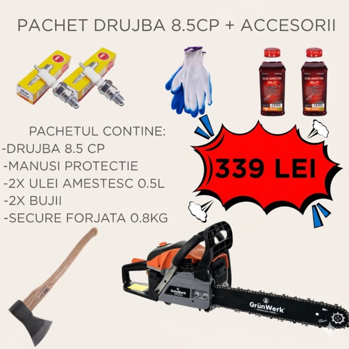 • 1 x Motofierăstrău GrunWerk 58cc